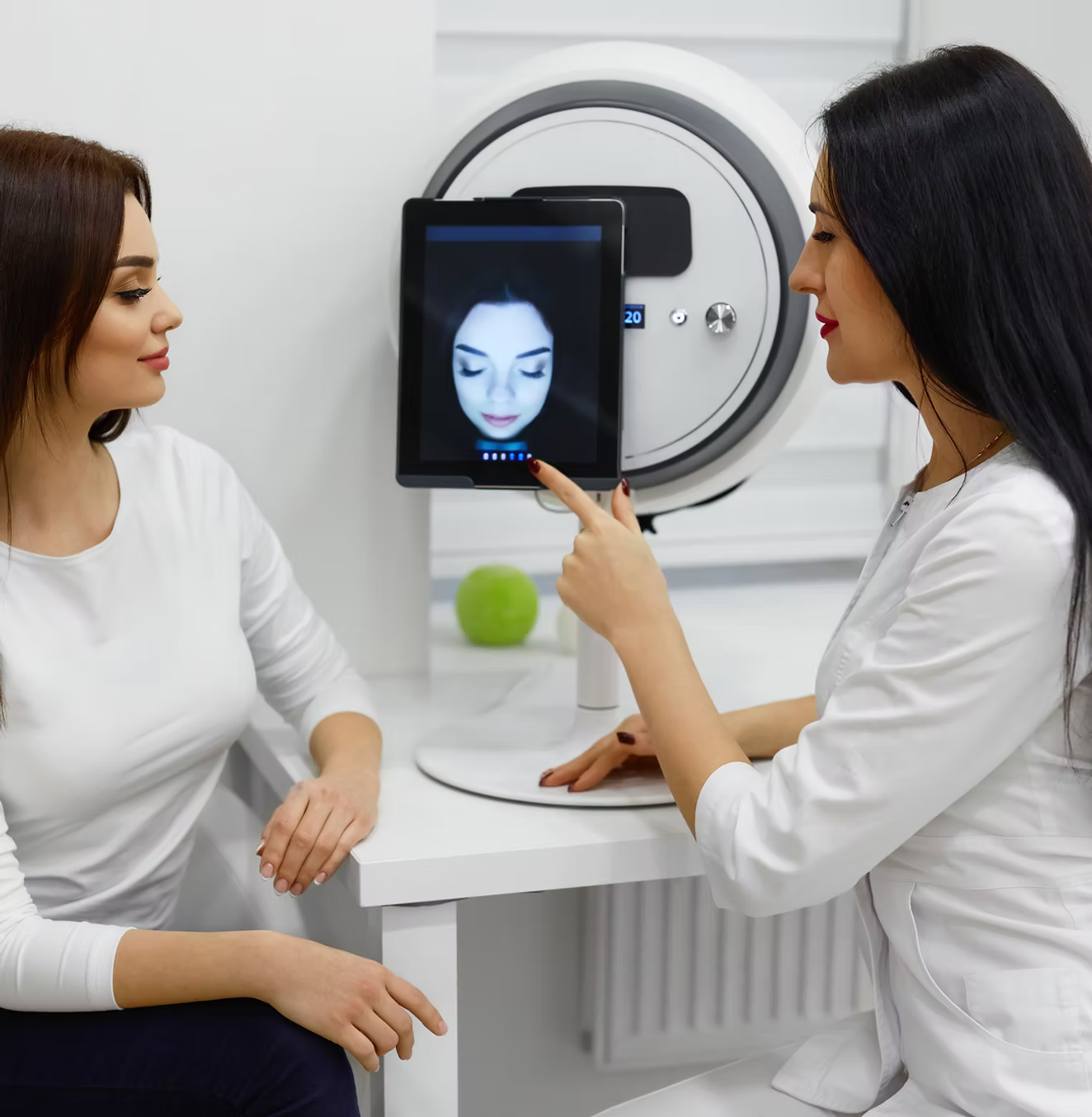 See your skin like never before. Our advanced Face Analysis Scanner reveals what’s happening beneath the surface — from hydration and pigmentation to collagen health.